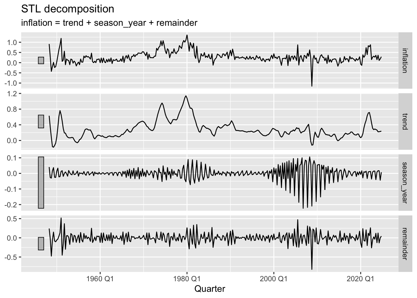 Series: ts(economic_data$inflation, frequency = 4, start = c(1948, 2))